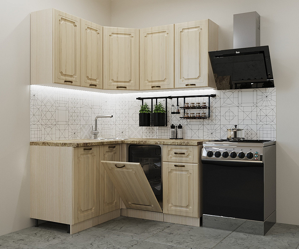 Угловой гарнитур для квадратной кухни
