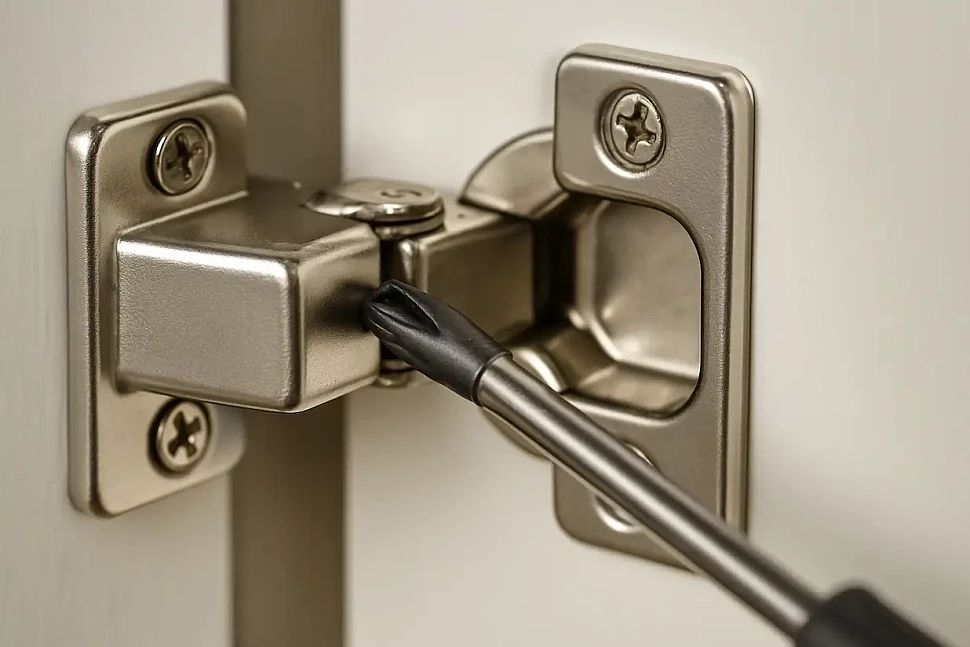 Иногда причина перекоса кроется не в регулировке, а в износе петель или деформации фасада. Деревянные и МДФ-дверцы чувствительны к перепадам влажности, особенно если шкаф установлен рядом с отоплением или окном. В этом случае регулировка помогает лишь временно, и петли стоит заменить.