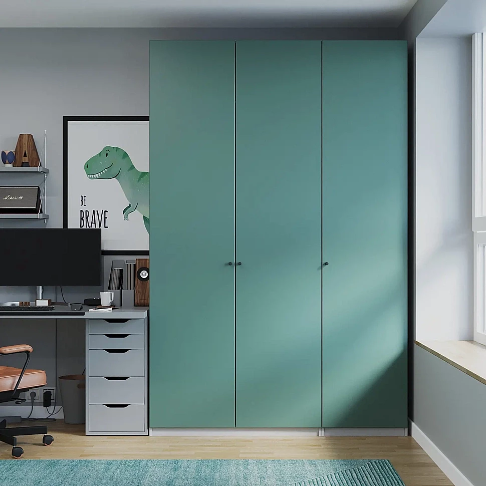 Для комнаты подростка рассмотрите матовые оттенки серого. Такой фасад будет выглядеть современно, на нем почти не видны отпечатки пальцев, а уход за ним очень прост.